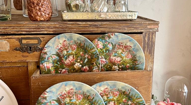 I piatti oleandro in melamina vetrificata si possono trovare presso il bellissimo negozio di Marco Segantin di Brescia insieme ad altri bellissimi oggetti!