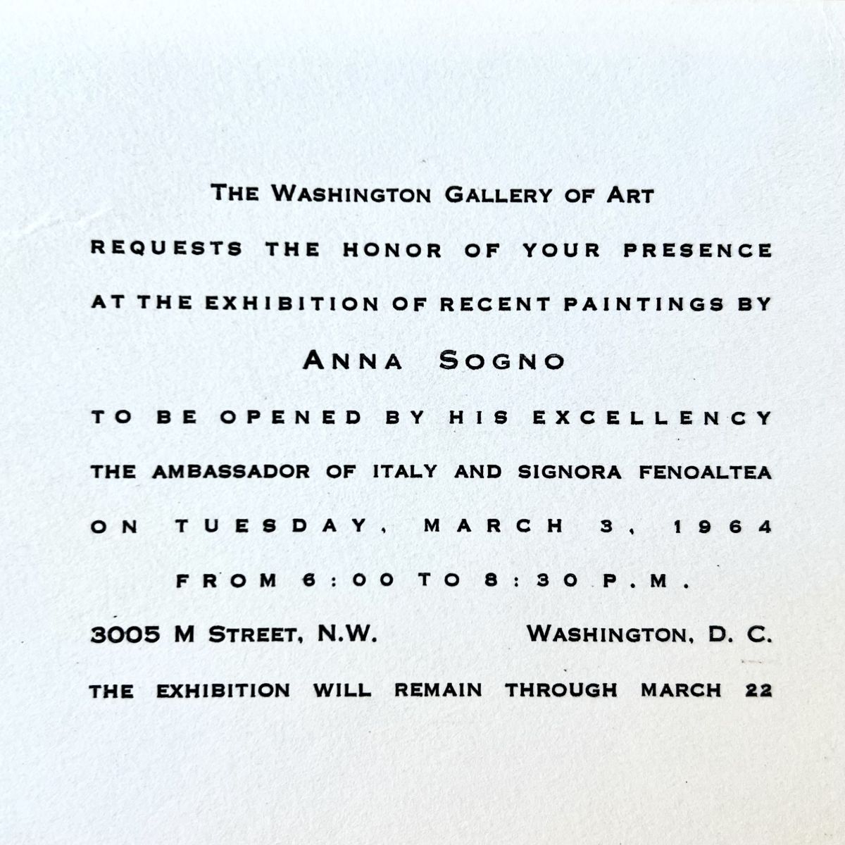 1965 Personale alla Washington Gallery of Arts, Washington.